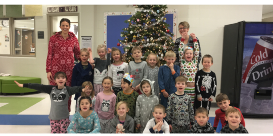 December 12th, 2019Students had a fun day as they had the opportunity to come to school in their comfy PJs! Many of them dressed up but we caught a picture of the Gr. 1 class in front of our Christmas tree in the Foyer.